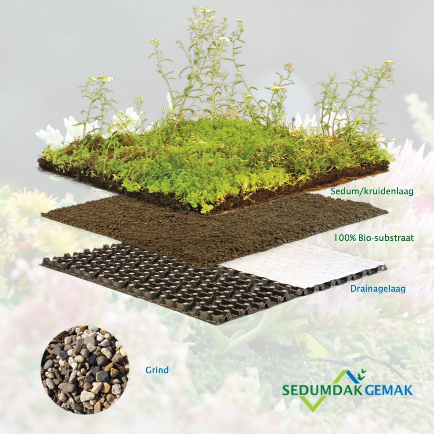 Opbouw van het kruiden sedumdak pakket